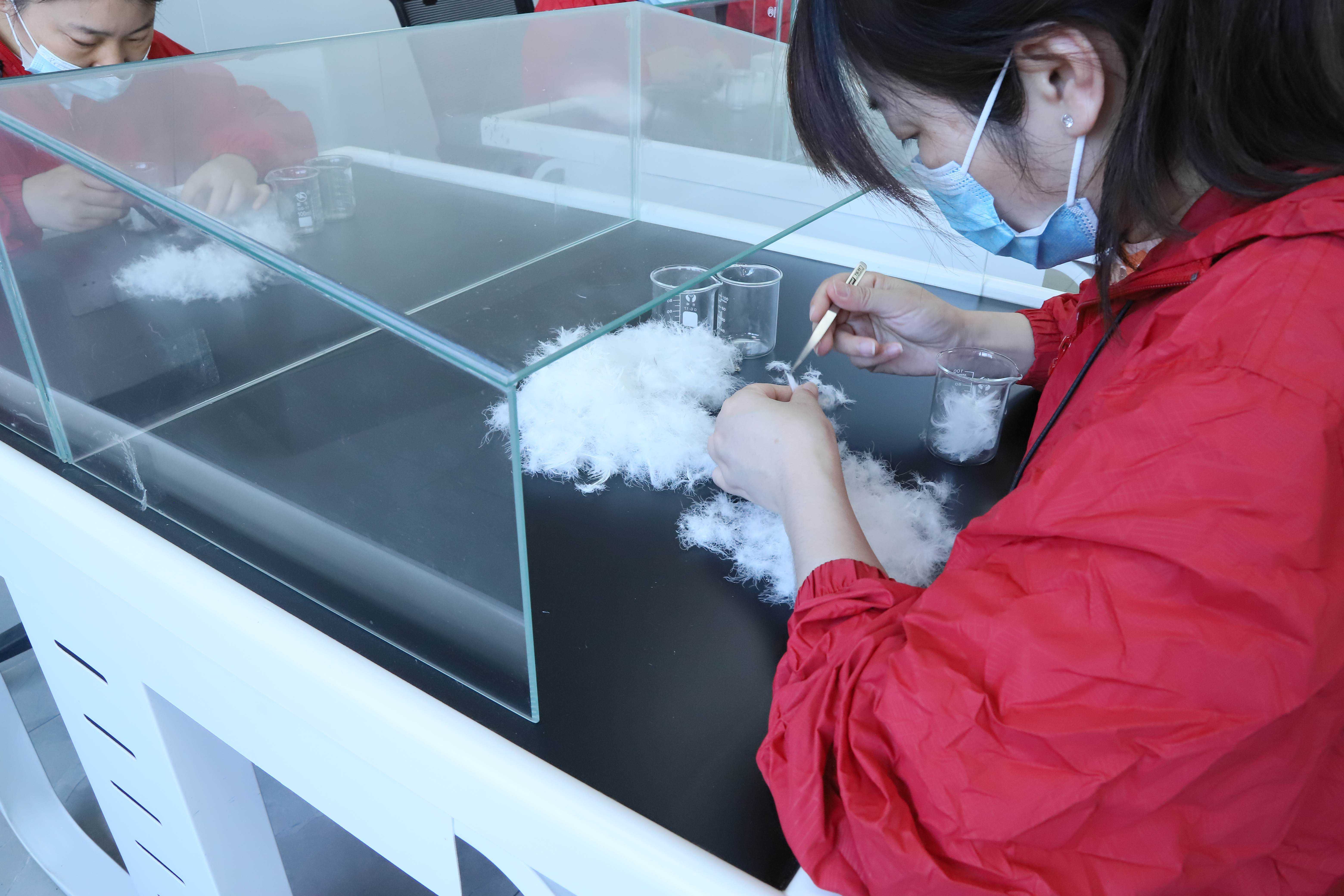 验检是对最终产品进行质量检查的步骤,包括尺寸、外观、蓬松度、清洁度等。这一步骤确保了每批羽绒填充料都符合质量标准,保障消费者的利益。